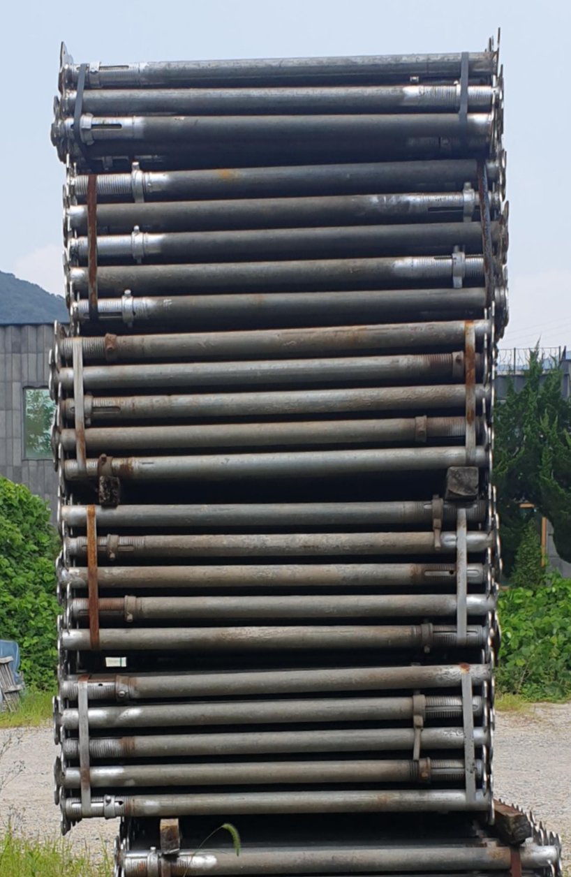 거푸집 및 콘크리트의 하중을 골고루 분산시켜 작업의 안정성을 확보해주고, 건물이나 아파트등 구조물의 형틀을 지지하는 역할을 하며, 거푸집 동바리용 지주로 사용됩니다.