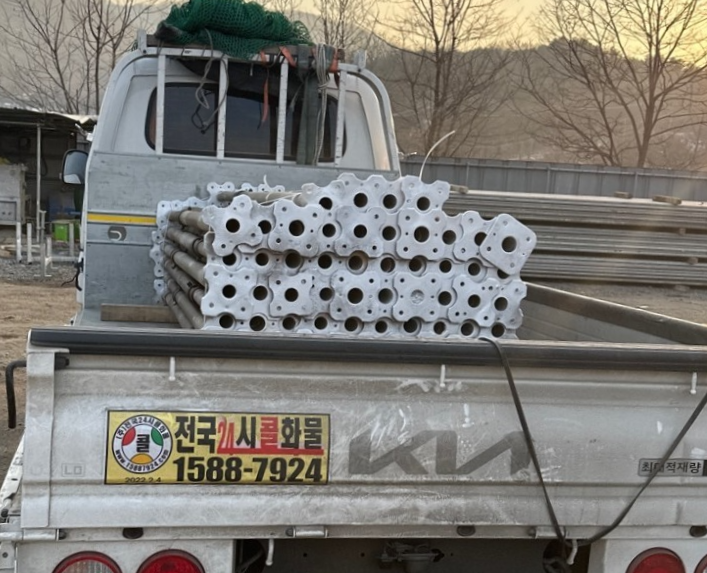 거푸집 및 콘크리트의 하중을 골고루 분산시켜 작업의 안정성을 확보해주고, 건물이나 아파트등 구조물의 형틀을 지지하는 역할을 하며, 거푸집 동바리용 지주로 사용됩니다.