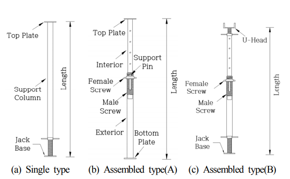 거푸집 및 콘크리트의 하중을 골고루 분산시켜 작업의 안정성을 확보해주고, 건물이나 아파트등 구조물의 형틀을 지지하는 역할을 하며, 거푸집 동바리용 지주로 사용됩니다.